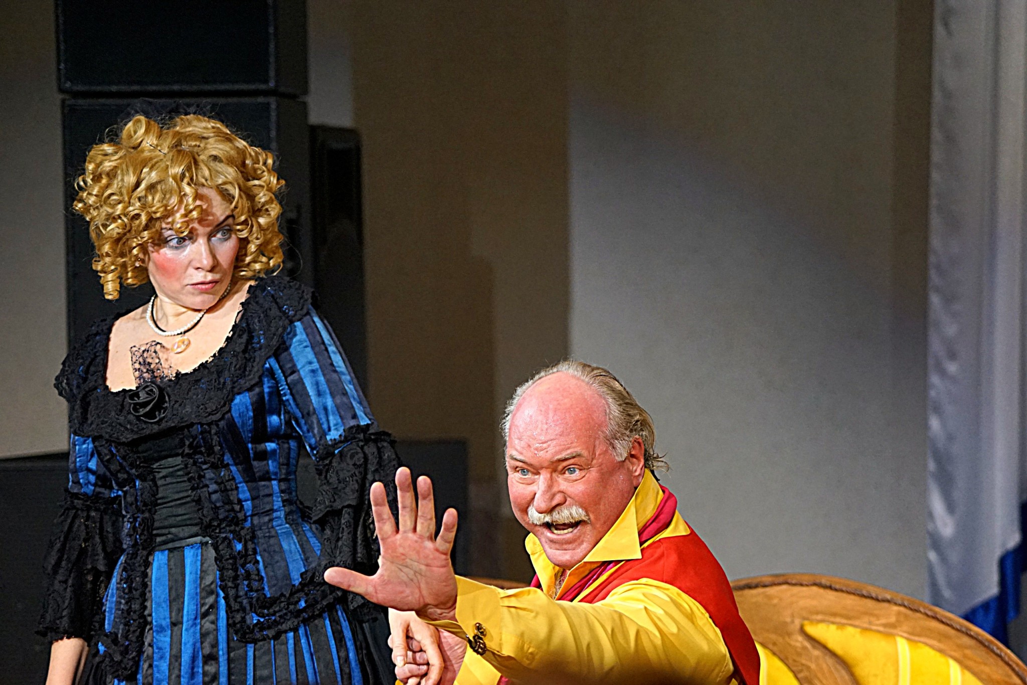 А в Голубой гостиной артисты Драматического театра Северного флота показали спектакль «Медведь» по пьесе А. П. Чехова.