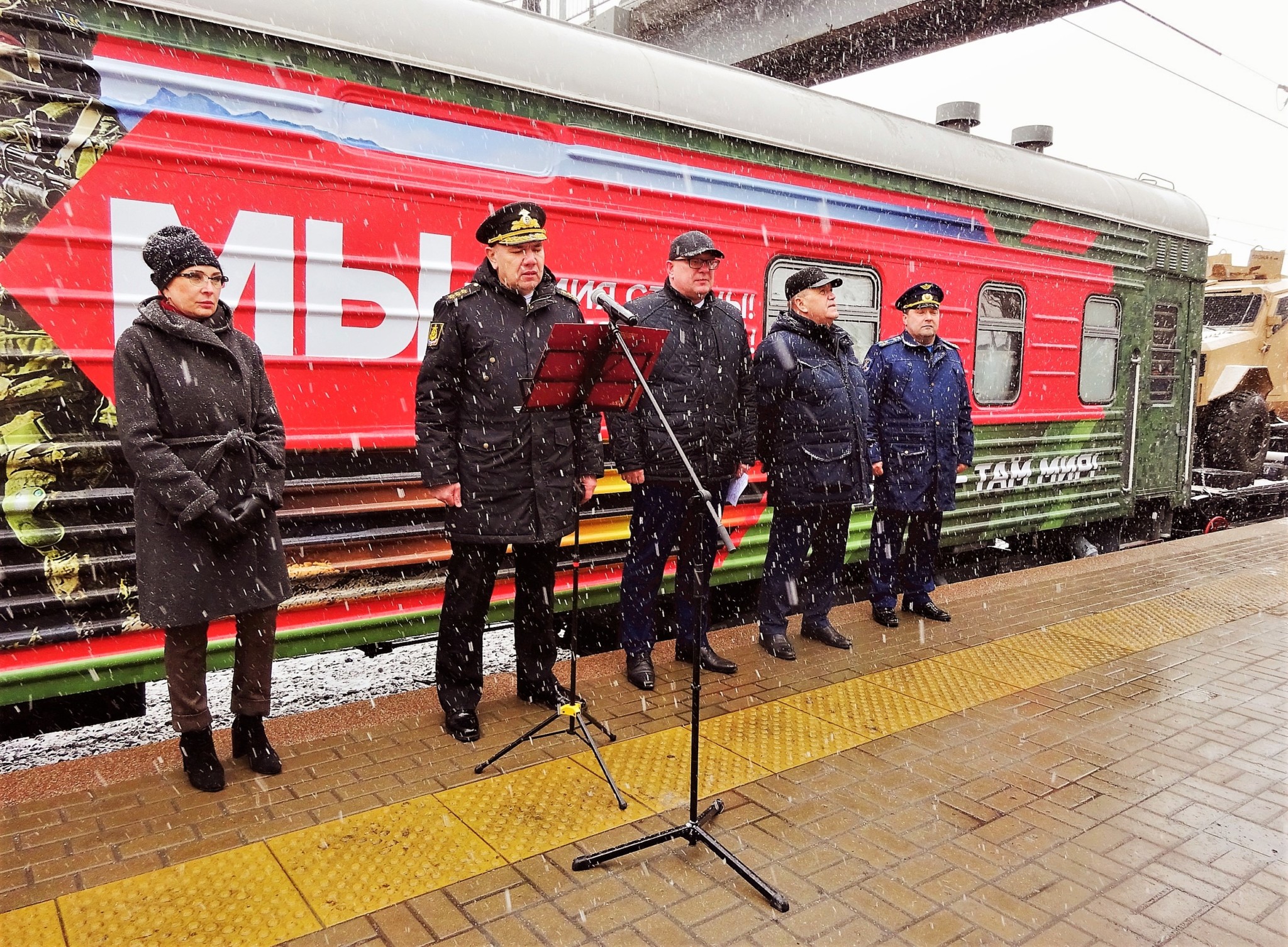 «Главная цель акции – сплочение общества через историю и современность, успехи и достижения страны и её славных Вооружённых Сил. Остановка в Мурманске выбрана не случайно. Мурманск по праву считается форпостом России в Арктике, его значение для страны трудно переоценить, особенно сегодня, когда государственная стратегия развития связана с освоением и обустройством Севера. А оборона Кольского Заполярья в годы войны – лучшая иллюстрация наших побед. Экспозиция агитпоезда ещё раз подтверждает связь нашего исторического прошлого, настоящего и будущего. Это лучшая мотивация быть достойным гражданином великой России и её надёжным защитником», — сказал командующий Северным флотом Александр Моисеев.