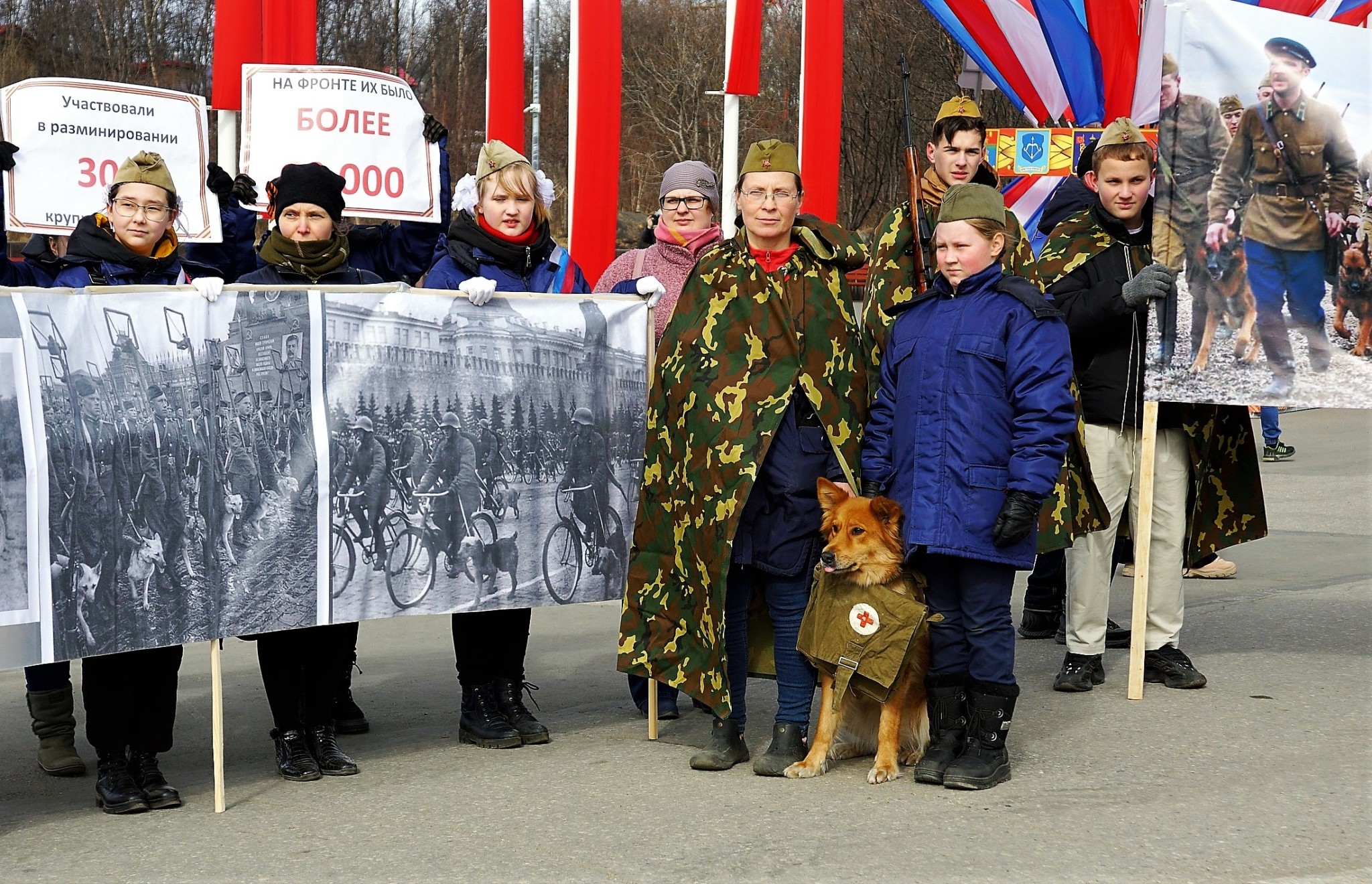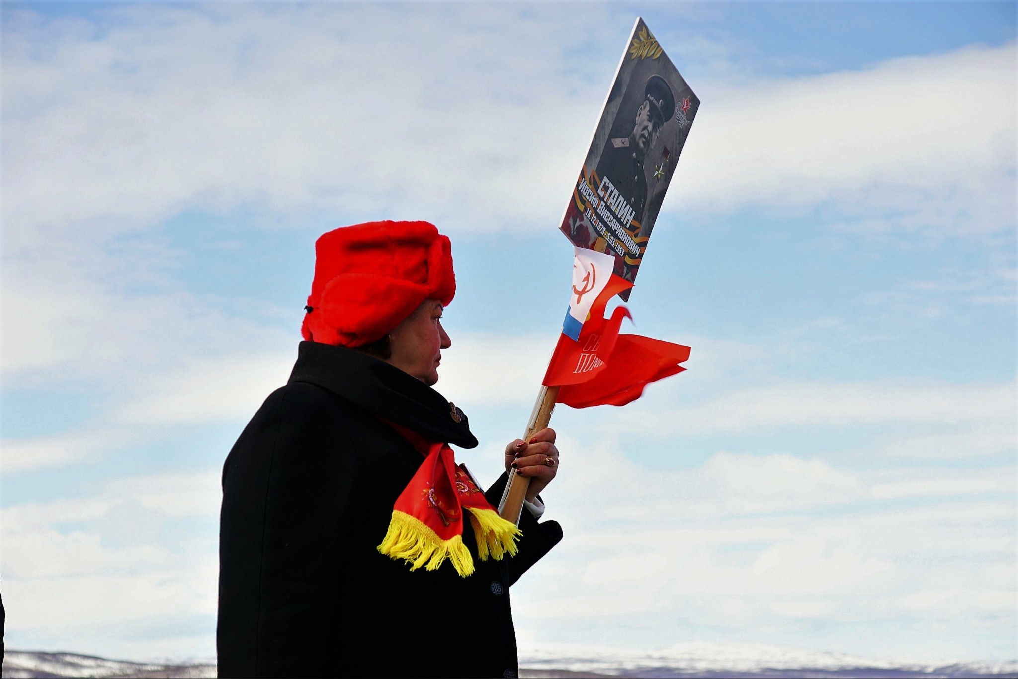 Участники многотысячной акции прошли от площади Пять Углов по проспекту Ленина до мемориала «Защитникам Советского Заполярья».