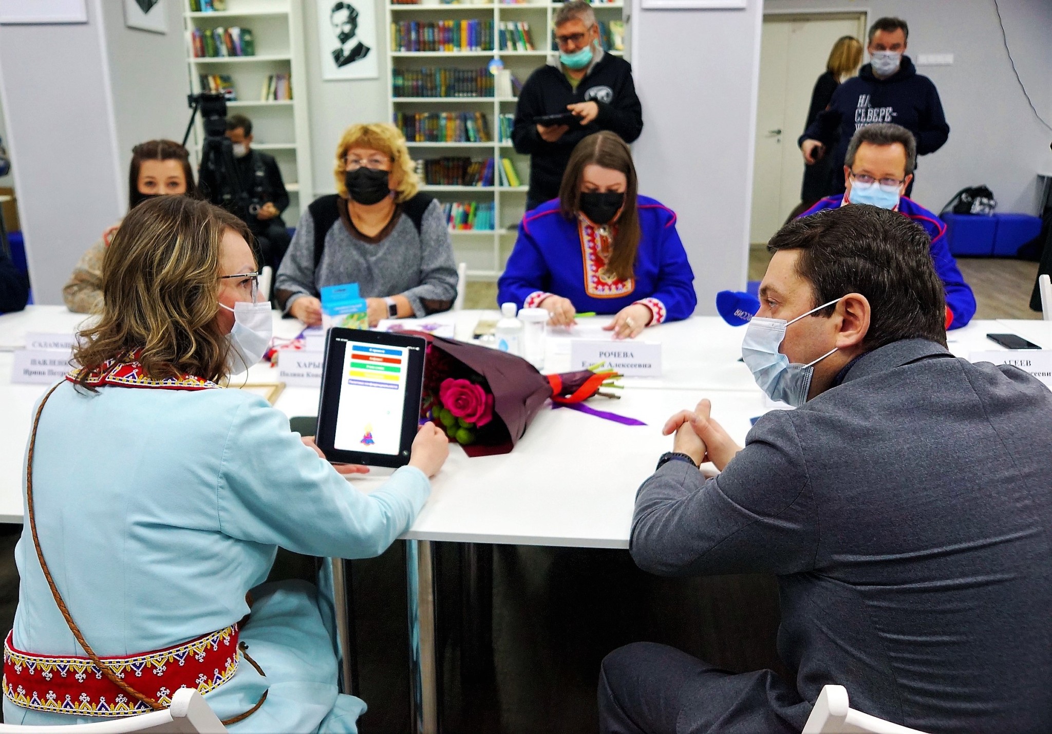 Полина Харыбина представила губернатору целый пакет интернет-проектов – сайт-музей, посвящённый подвигу оленетранспортных батальонов в годы Великой Отечественной войны, мобильное приложение для изучения саамского языка, набор стикеров для соцсетей. Также председатель Самь Соббар выступила с инициативой провести специальный семинар по подготовке и написанию проектов.