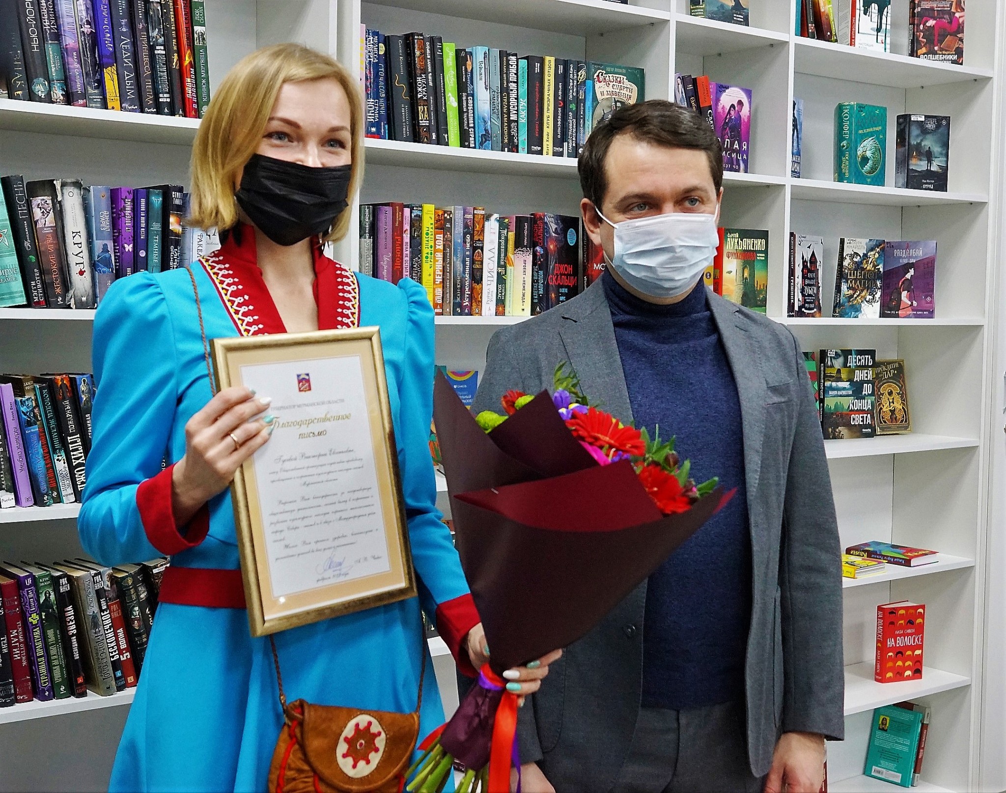 За плодотворную общественную деятельность и личный вклад в сохранение и развитие культурного наследия саами Благодарственные письма губернатора получили руководитель Мурманского отделения общественной организации содействия правовому просвещению и сохранению культурного наследия саамов Виктория Гусева и председатель Саамского собрания Самь Соббар Полина Харыбина.