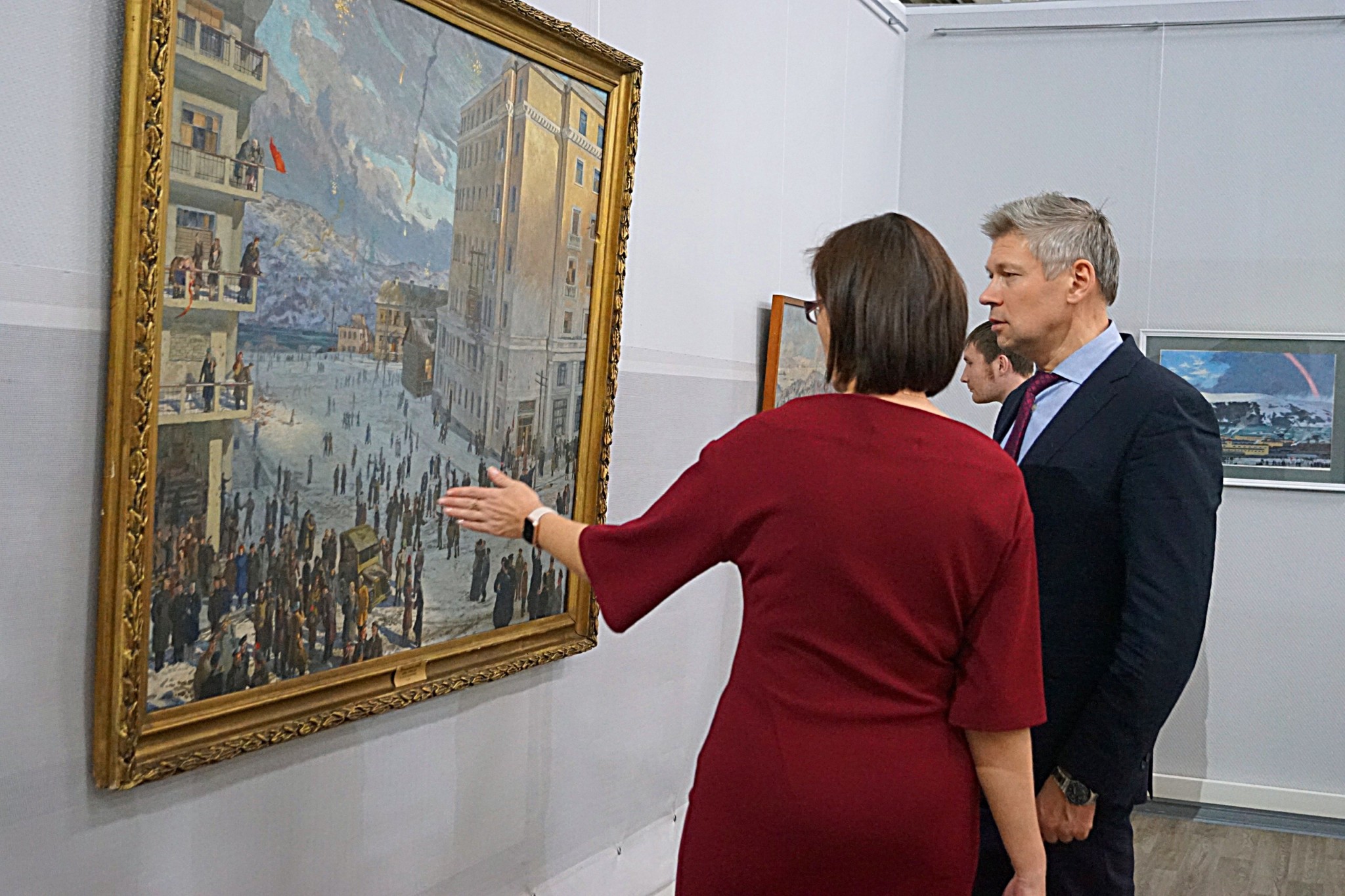 На выставке представлены работы Михаила Успенского, Михаила Новикова, Евгения Визиря-Дорошенко, эмоционально и поэтически воспевших подвиг защитников Заполярья.