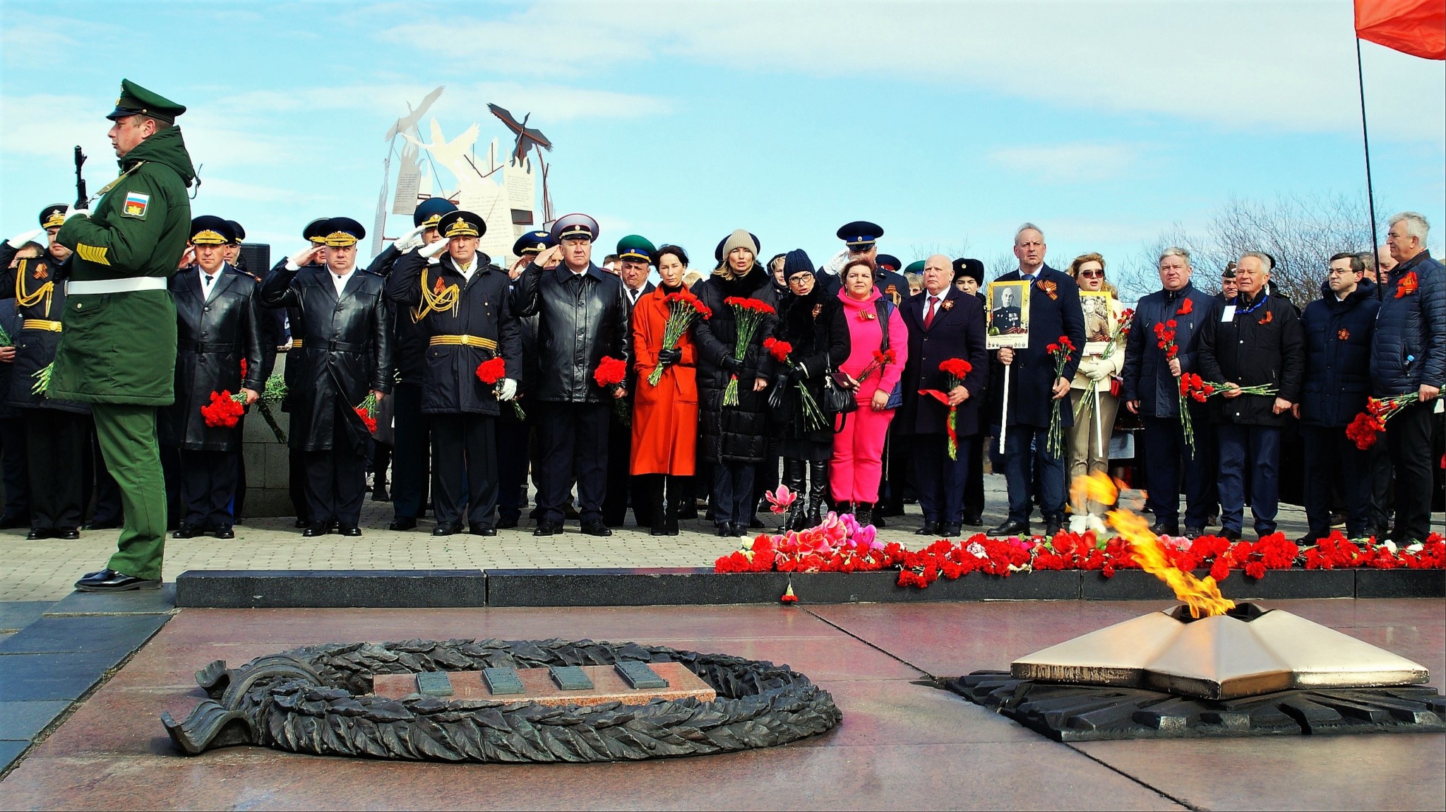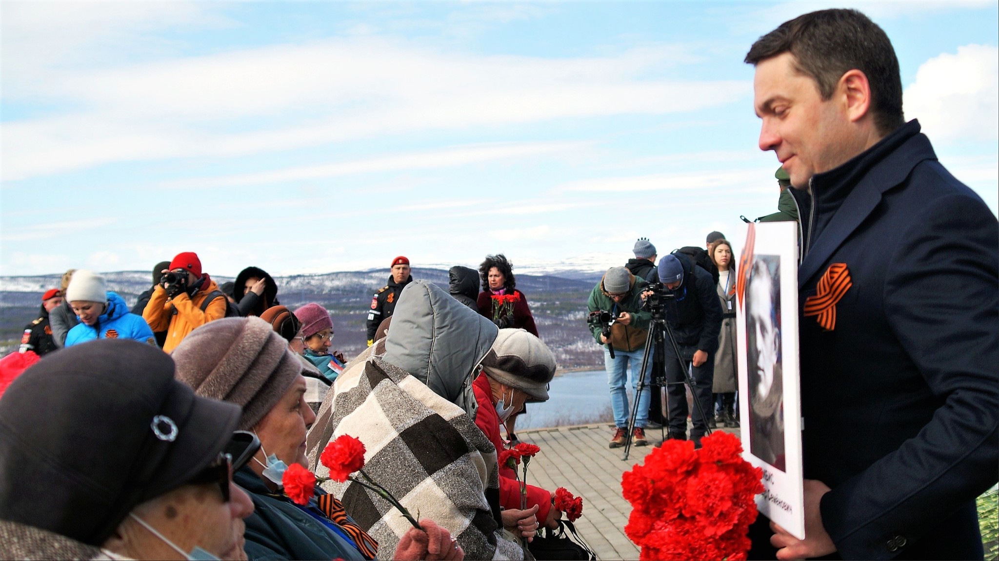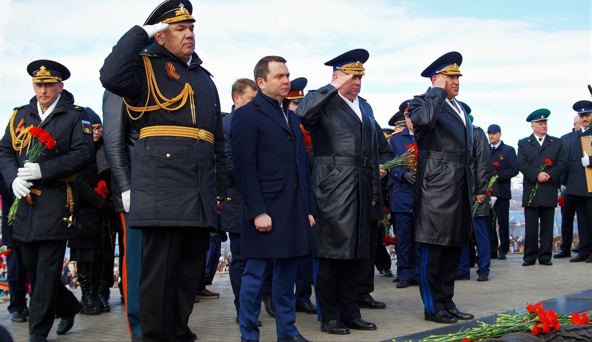 «Сегодня мы находимся у мемориального комплекса, чтобы поклониться памяти подвига воинов-защитников Заполярья, воинов Великой Победы, народа-победителя. Мы стоим у подножия памятника – символа воина-защитника и освободителя, воина, который разгромил фашистские полчища, освободил Европу от нацизма. Во всех городах России, братских государств и Европы стоят такие памятники. Именно воин-освободитель является той основой, которая сегодня позволяет нам говорить о будущем, о мире», – подчеркнул Александр Моисеев и еще раз поздравил северян с праздником.