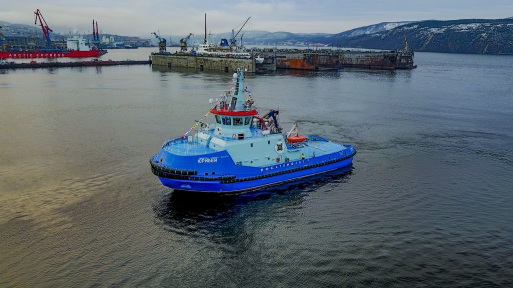 — Ледокольный буксир «Юрибей» мощностью 7 мегаватт — судно уникальное, кроме него такого ещё не существует, наверное, в мире. Он будет обслуживать суда-газовозы в ледовых условиях и заниматься их постановкой к причалу, — рассказал начальник управления эксплуатации флота — начальник морских операций ФГУП «Атомфлот» Владимир Арутюнян.