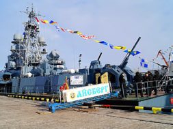 Торжество началось с внесения Государственного Флага РФ, Знамени Победы и флага Министерства обороны. Музыкальное сопровождение обеспечивал оркестр Северного флота.