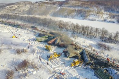 Ночью 24 марта в Мурманской области перевернулись грузовые вагоны с удобрением.