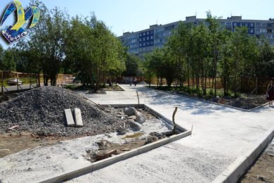 Строительство сквера в районе дома №31 по улице Шабалина идет с опережением графика, поэтому уже в конце августа мурманчане смогут оценить, как преобразился этот зеленый уголок города.
