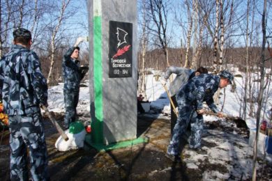 Традиционно сотрудники УФСИН России по Мурманской области в преддверии Дня Великой Победы приводят в порядок подшефные обелиски.