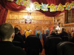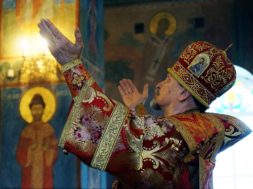 В Мурманске торжественная встреча символа воскресения народом и духовенством епархии во главе с митрополитом Митрофаном прошла в Свято-Никольском кафедральном соборе перед началом Великой Пасхальной вечерни.
