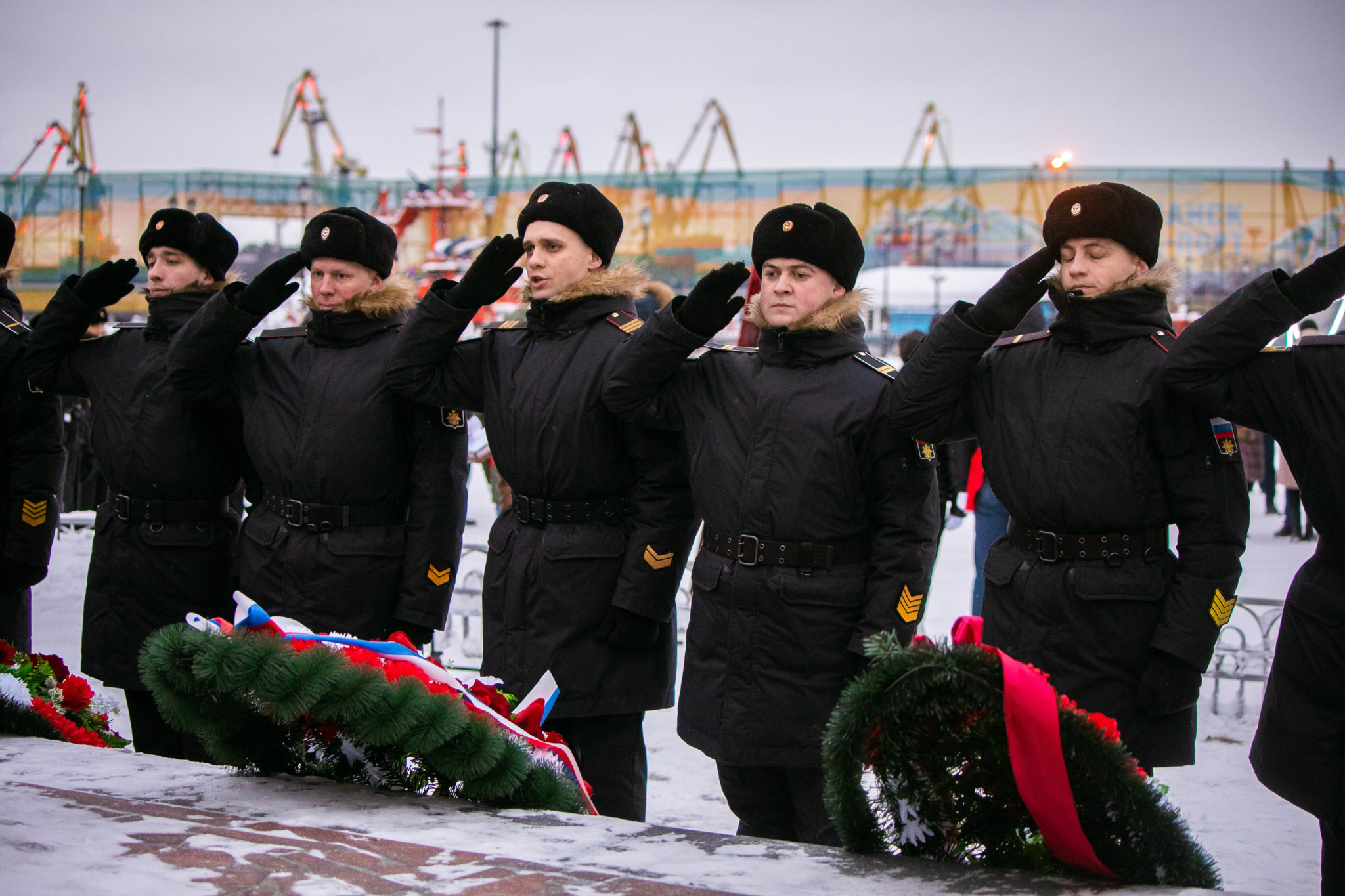 В рамках памятных мероприятий состоялся торжественный митинг у памятника портовикам, погибшим в годы Великой Отечественной войн. К постаменту были возложены цветы, а в завершение церемонии с буксира АО «МАСКО» на воду были спущены венки.