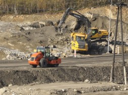 Рабочие уже срезали часть верхнего слоя асфальтобетонного покрытия и частично уложили новое полотно.