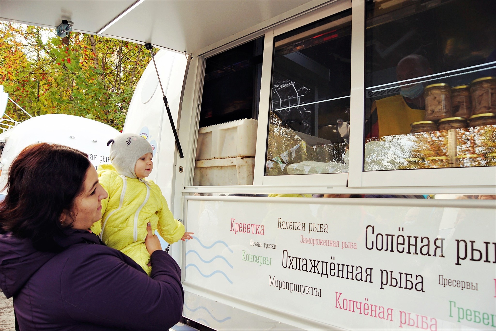 С помощью четырех брендированных фудтраков уличная торговая площадь была организована в центре города, на улице Воровского. На ярмарке можно было приобрести охлажденную, мороженую, копченую рыбу, пресервы, морепродукты.